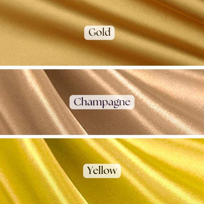 Premium Charmeuse Satin – Smooth, lightweight, and elegant with a soft silky drape.