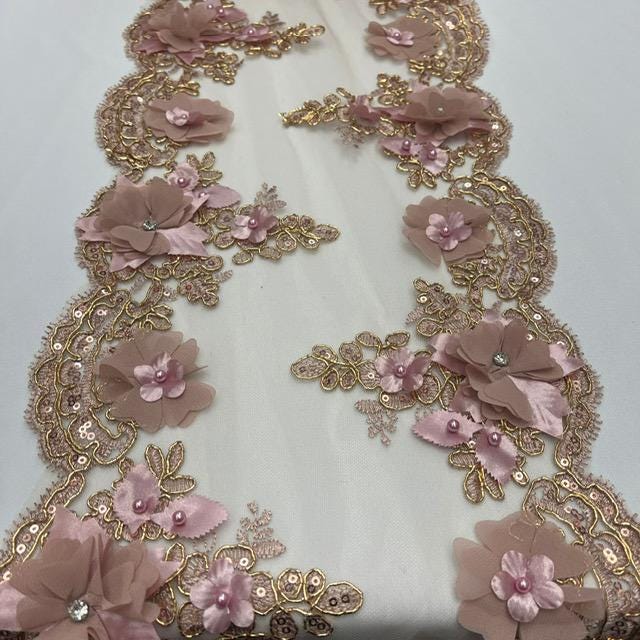 Add elegance and dimension to your creations with our 3D Floral Beaded Lace Fabric. Featuring delicate 3D floral embroidery, pearls, and beads on soft mesh, this fabric is perfect for bridal gowns, veils, couture dresses, and luxury décor.