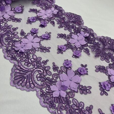 Add elegance to your designs with VT-32 Premium 3D Beaded Lace Fabric. Soft mesh with 3D floral appliqués, beads, and sequins makes it perfect for bridal gowns, evening dresses, couture fashion, and upscale décor. Sold by the yard in continuous cuts.